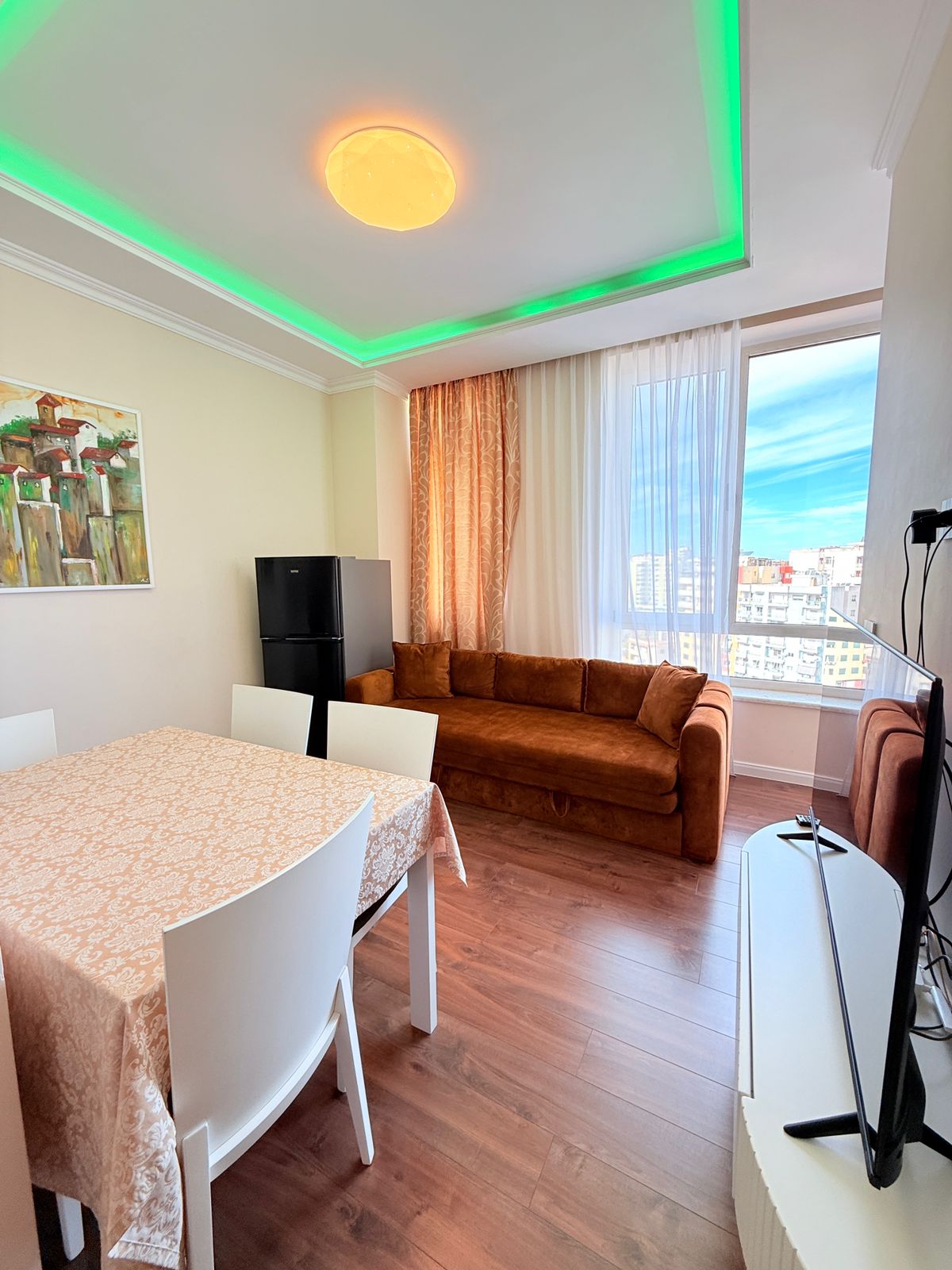 Disponohet për qira një garsoniere e rregullt dhe e mobiluar, me një pamje të hapur drejt detit 🌅. Ambienti ndodhet në një godinë të qetë dhe të mirëmbajtur, shumë pranë qendrës dhe shëtitores.