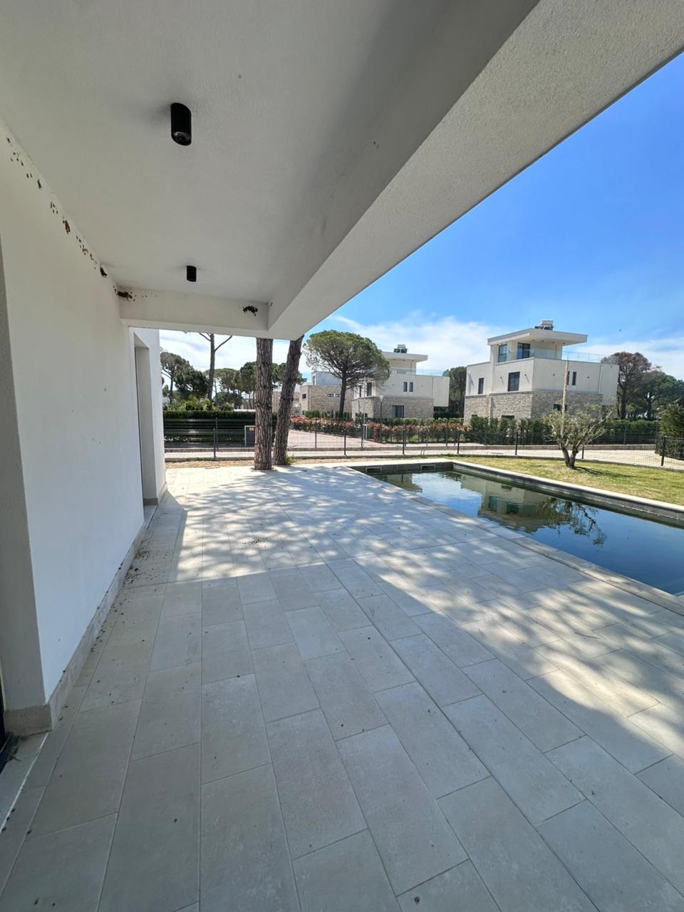 Hapësirat e jashtme janë po aq tërheqëse, me një pishinë private 8×4 m dhe ambient relaksues, ideale për familje dhe mikpritje. Vila ndodhet në rreshtin e tretë nga deti, duke ofruar afërsi me bregdetin dhe një ambient të qetë.